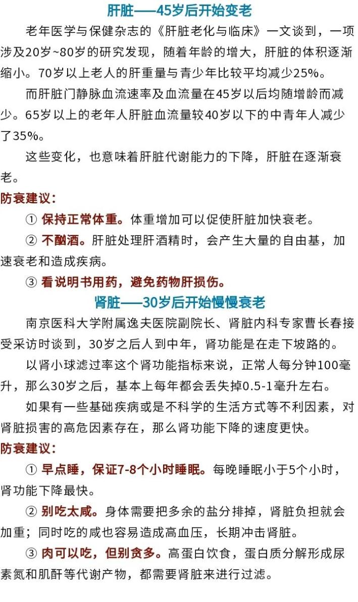 有些朋友認(rèn)為衰老從60多歲才開始,實(shí)際上,身體器官機(jī)能的衰退在某個(gè)時(shí)段就已啟動(dòng)。