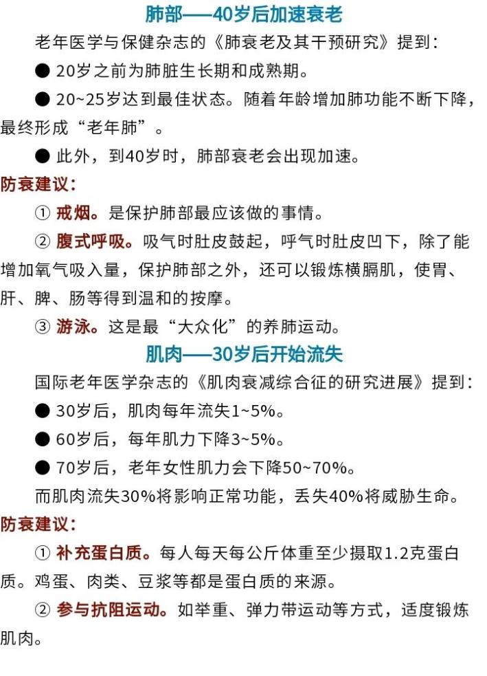 身體各器官衰老時(shí)間及防衰建議