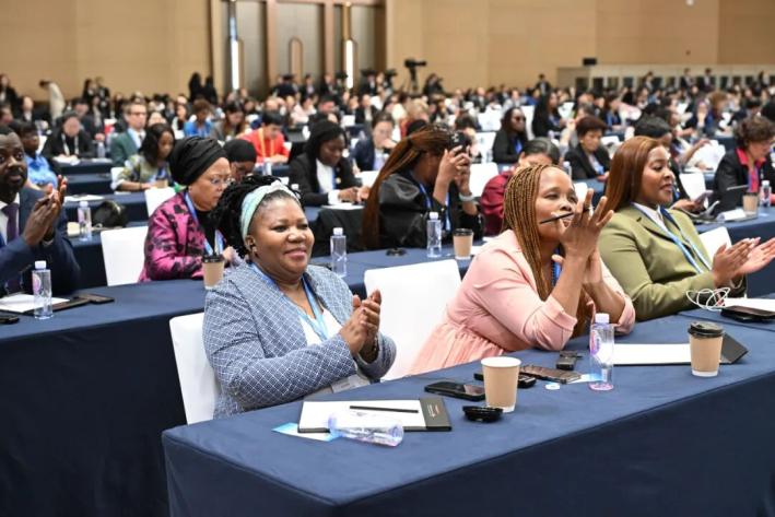 與會嘉賓在全球婦女峰會現(xiàn)場鼓掌。中國婦女報全媒體記者 楊睿 攝