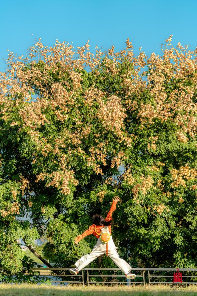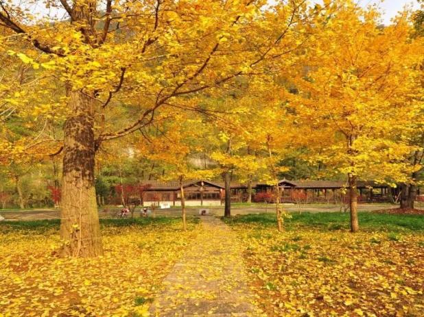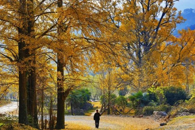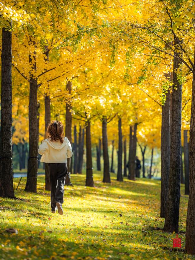 樹(shù)上樹(shù)下一片金黃,就連人穿行其中,身上的光和風(fēng)都被染成了金色,暖融融的,包裹著每一個(gè)停留的身影。