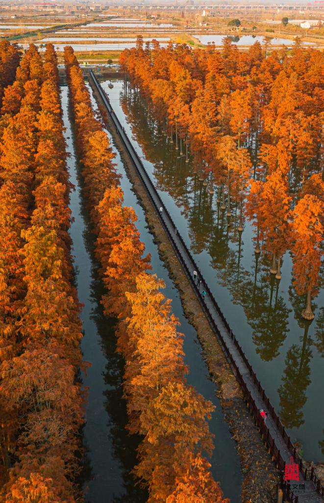 水杉自帶一種高級(jí)的質(zhì)感,它沒(méi)有楓葉的熱烈,也不像銀杏那樣耀眼,但在紅與黃的漸變中,暈染出了油畫般的溫暖與細(xì)膩。