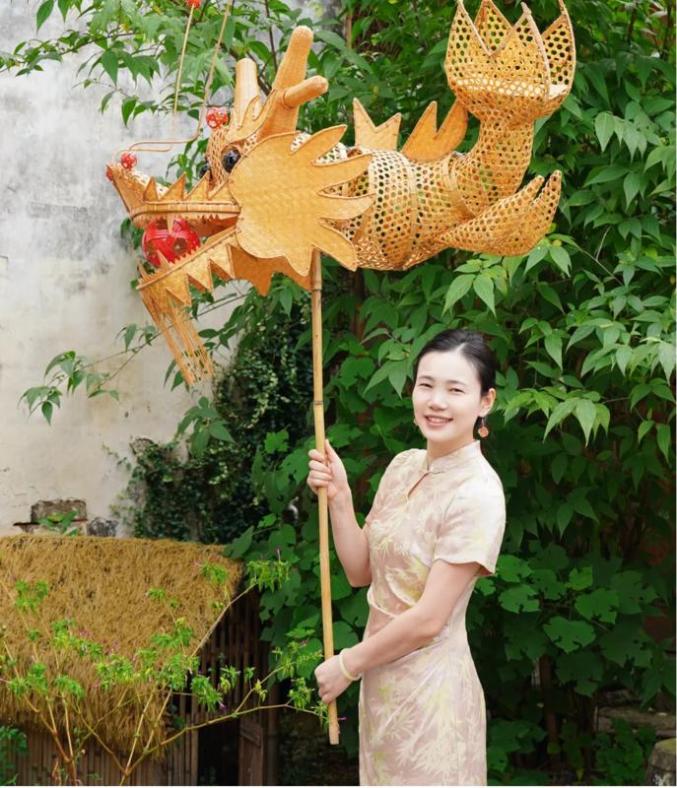 鄒霞是90后青年創(chuàng)客,“一盒故鄉(xiāng)”品牌創(chuàng)始人,有13年設(shè)計行業(yè)背景,致力于用現(xiàn)代審美和設(shè)計手法傳播和發(fā)揚故鄉(xiāng)的人情風(fēng)味與生態(tài)元素。竹子和竹編工藝是她家鄉(xiāng)衢州市龍游縣溪口鎮(zhèn)最具代表性的生態(tài)元素和傳統(tǒng)技藝。竹編魚象征著風(fēng)調(diào)雨順、年年有余,以“魚游無界”隱喻自然的無窮境界。該作品首次在家鄉(xiāng)展出就獲得好評,成為傳統(tǒng)與現(xiàn)代的情感紐帶。鄒霞認(rèn)為此次作品能走進復(fù)興公園是一段奇妙的緣分,讓家鄉(xiāng)竹編傳統(tǒng)工藝與都市現(xiàn)代文化有了全新的對話機會。
