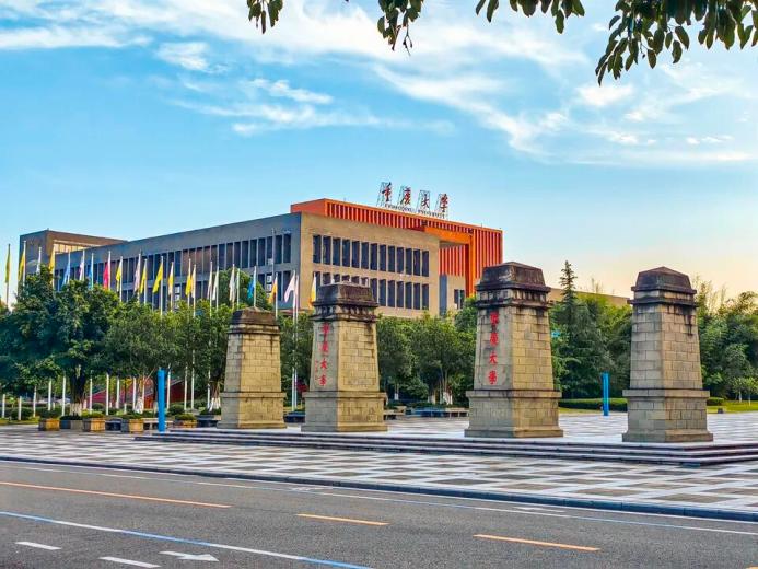 從虎溪校園東門入校,映入眼簾的是門柱廣場,廣場老門柱是按重慶大學(xué)老校門同比例建造的,代表新老校區(qū)的文化傳承?;疑u、暗紅凹刻,沉淀著重慶大學(xué)近百年深厚底蘊。