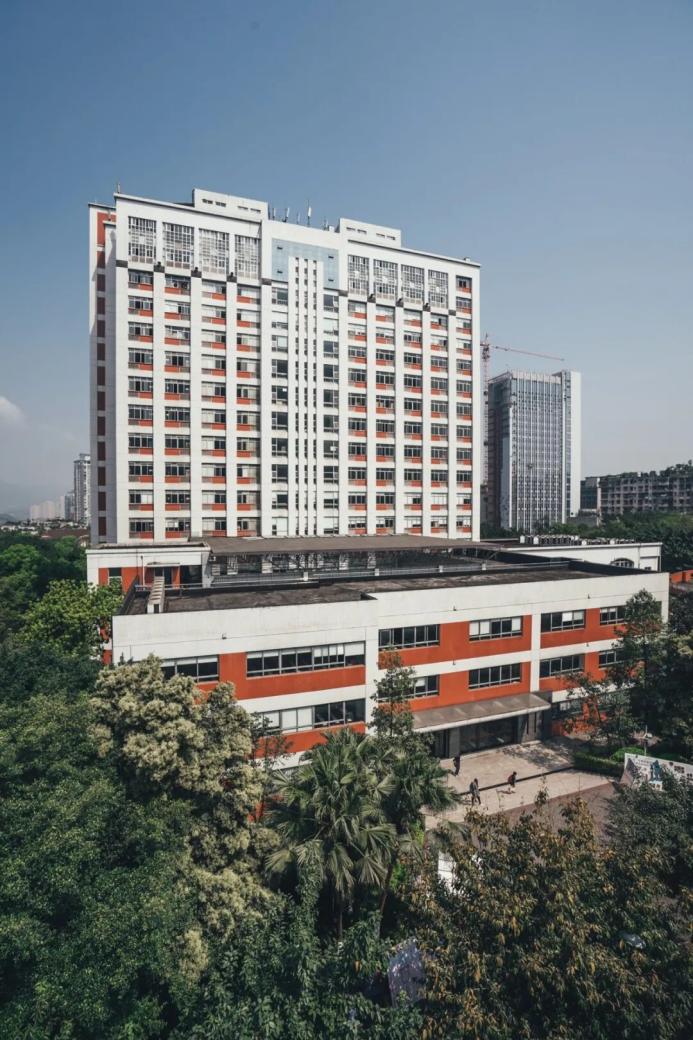 B校園建工館建成于1952年,也被稱作重慶大學(xué)B校園第一教學(xué)樓,緊鄰食堂、校門與運動場,煙火氣與青春活力圍繞其旁。一代代土木人從這里出發(fā),用圖紙筑起城市脊梁??靵砀惺茕摻罨炷恋摹霸娨狻保?/p>