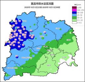 宜昌市10月12日23時至13日09時降雨量實況圖