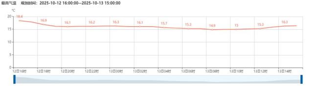 15日晚上到16日白天,陰天,局部小雨,最低氣溫16~18℃,最高氣溫23~24℃。