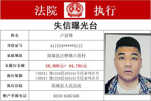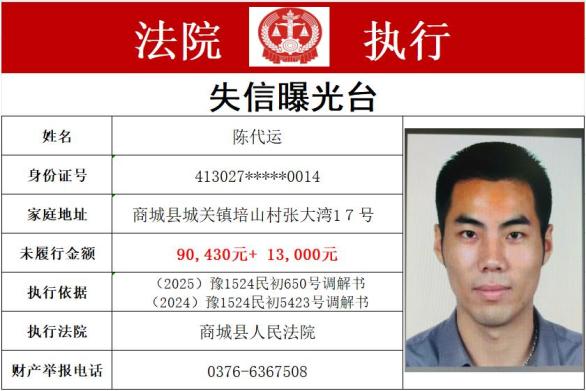 為促使被執(zhí)行人自覺履行生效法律文書確定的義務(wù),推進社會信用體系建設(shè),商城縣人民法院特對有履行能力卻拒不履行生效法律文書確定義務(wù)的被執(zhí)行人情況進行統(tǒng)一通報。(截至2025年9月23日,以下失信被執(zhí)行人仍未履行法律義務(wù))