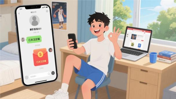 小宇覺得兼職輕松,按聯(lián)系方式添加對(duì)方。對(duì)方先讓他關(guān)注幾個(gè)店鋪,給了他5元紅包作為“新手獎(jiǎng)勵(lì)”。小宇很開心,覺得兼職靠譜。