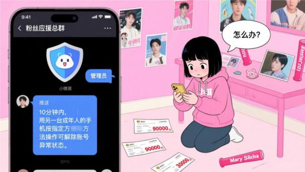 這是典型的“飯圈詐騙”!騙子抓住同學(xué)們對(duì)偶像的喜愛和容易恐慌的心理設(shè)圈套。正規(guī)明星應(yīng)援活動(dòng)不會(huì)以“小額捐款領(lǐng)簽名照和周邊”為噱頭,也不能隨意判定“轉(zhuǎn)賬行為異常,涉嫌違法”;要求短時(shí)間用成年人手機(jī)操作,是趁人慌亂實(shí)施詐騙,引導(dǎo)用家長(zhǎng)手機(jī)轉(zhuǎn)賬是核心目的。