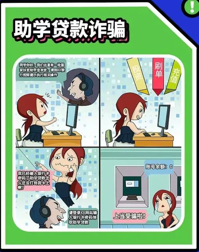 3. 對于謊稱貸款記錄異常,誤導(dǎo)受害人,用低門檻、高額度吸引學生貸款,以手續(xù)費、服務(wù)費等名義多次扣費的,均為詐騙行為。