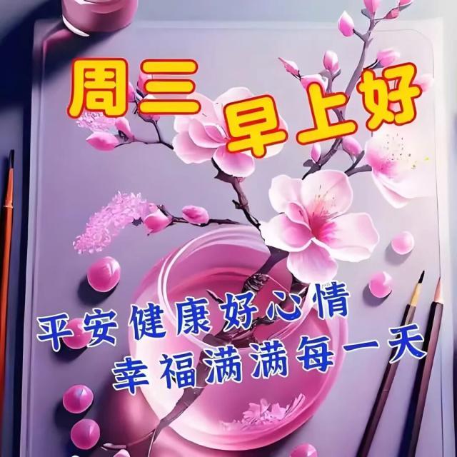 早上好,清晨可觀陽光燦爛,傍晚能看夕陽滿天。登上健康航船,駛向福壽家園。每天晨起問候,祝福一生平安。愿生活充滿陽光,愿身體健健康康,愿心情快樂舒暢。星期三早上好!