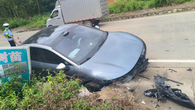 賀州市公安局交通警察支隊(duì)平桂大隊(duì)公會中隊(duì)接到報(bào)警后立即趕往現(xiàn)場,只見一輛小型新能源轎車倒在路邊水溝,車輛受損,車內(nèi)安全氣囊全部彈出。交警迅速對事故現(xiàn)場進(jìn)行安全布控、警戒,防止發(fā)生二次事故。