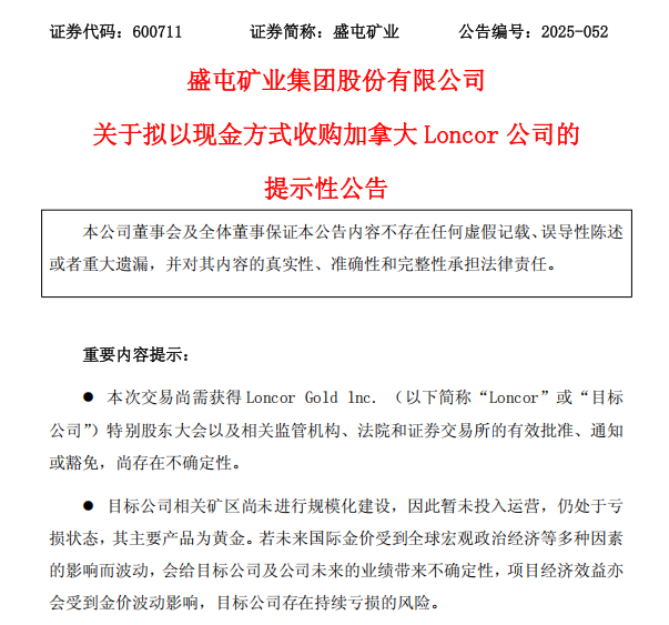 10月14日晚間,盛屯礦業(yè)發(fā)布公告,宣布擬收購加拿大上市公司Loncor Gold lnc.(以下簡稱Loncor)全部已發(fā)行且流通的普通股及待稀釋股份,交易金額約2.61億加元,折合人民幣約13.5億元。