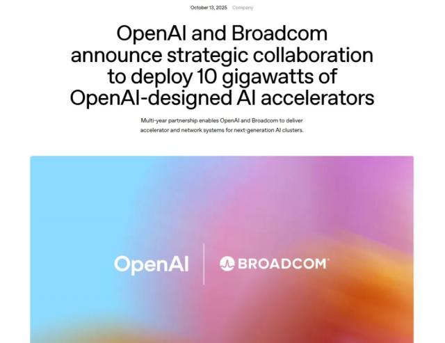 電子發(fā)燒友網(wǎng)報(bào)道(文 / 莫婷婷)在人工智能大模型訓(xùn)練與推理成本居高不下、算力需求呈指數(shù)級(jí)增長(zhǎng)的背景下,10月,OpenAI與Broadcom(博通)正式宣布達(dá)成一項(xiàng)前所未有的戰(zhàn)略合作:共同部署總規(guī)模達(dá)10吉瓦(GW)的定制AI芯片與網(wǎng)絡(luò)系統(tǒng)機(jī)架。這一合作彰顯了博通在AI時(shí)代端到端的技術(shù)實(shí)力,標(biāo)志著其技術(shù)能力已形成從底層研發(fā)到大規(guī)模工程落地的完整閉環(huán)。
