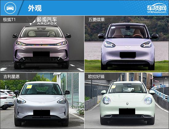 本次對比的四款純電動小型車分別是極狐 T1、五菱繽果、吉利星愿和歐拉好貓,它們的價格都控制在 9 萬元以內(nèi)。當然,在價格實惠的基礎(chǔ)上,時尚個性的設(shè)計和豐富的配置更為重要。那么,這四款車的綜合表現(xiàn)究竟如何呢?接下來我們從多個方面進行分析。