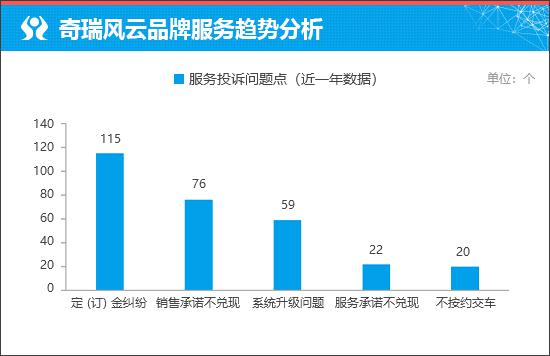 從服務(wù)投訴問題點(diǎn)來看,“定(訂)金糾紛”成為車主對(duì)于奇瑞風(fēng)云品牌抱怨相對(duì)較多的服務(wù)問題。通過進(jìn)一步分析可知,該投訴問題主要集中在風(fēng)云T9和風(fēng)云A9L車型。