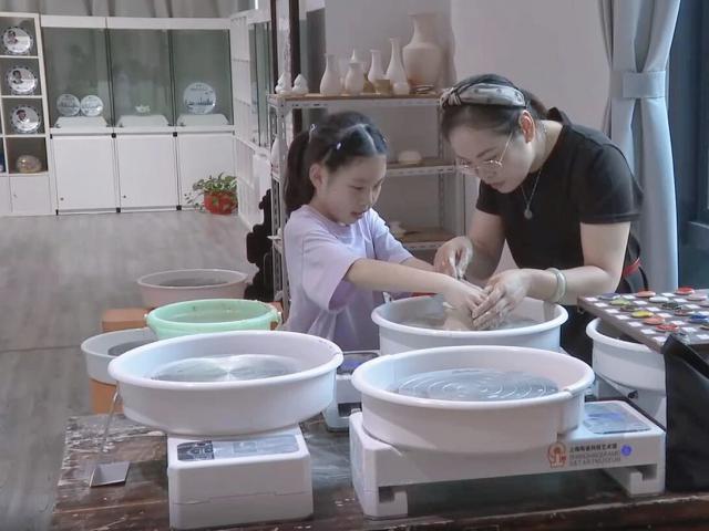 在上海陶瓷科技藝術(shù)館新館內(nèi)的創(chuàng)意體驗區(qū),參觀者可以參與拉坯、配釉、釉上彩繪、陶瓷首飾制作等活動,親身感受陶瓷文化的魅力。