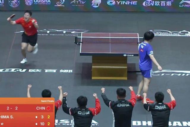 第二盤,日本隊(duì)再度獲勝,以2 - 0領(lǐng)先中國(guó)隊(duì)。此時(shí),中國(guó)隊(duì)只要再輸一盤就會(huì)被淘汰。張本智和與隊(duì)友們?cè)谝慌耘d奮不已,滿心期待林詩(shī)棟在第三盤失利。