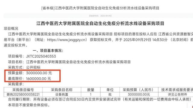 江西一醫(yī)院300萬設(shè)備采購項目1000元中標(biāo),多方作出回應(yīng)