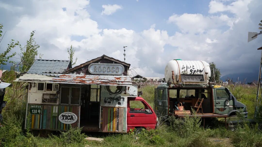 我理解這些爭(zhēng)議,因?yàn)槲乙矌Ш⒆尤ミ^。那是三年前,全家到麗江旅行,看完玉龍雪山后,在朋友推薦下繞道去了荒野之國。第一次到門口,我還以為走錯(cuò)了地方。入口沒有刻意美化,鐵皮、大木樁、半生銹的裝置堆在一起,沒走幾步,就有會(huì)“叮當(dāng)”響的小火車從頭頂駛過,旁邊樹屋下有人彈吉他,小朋友在草地上追逐嬉戲。