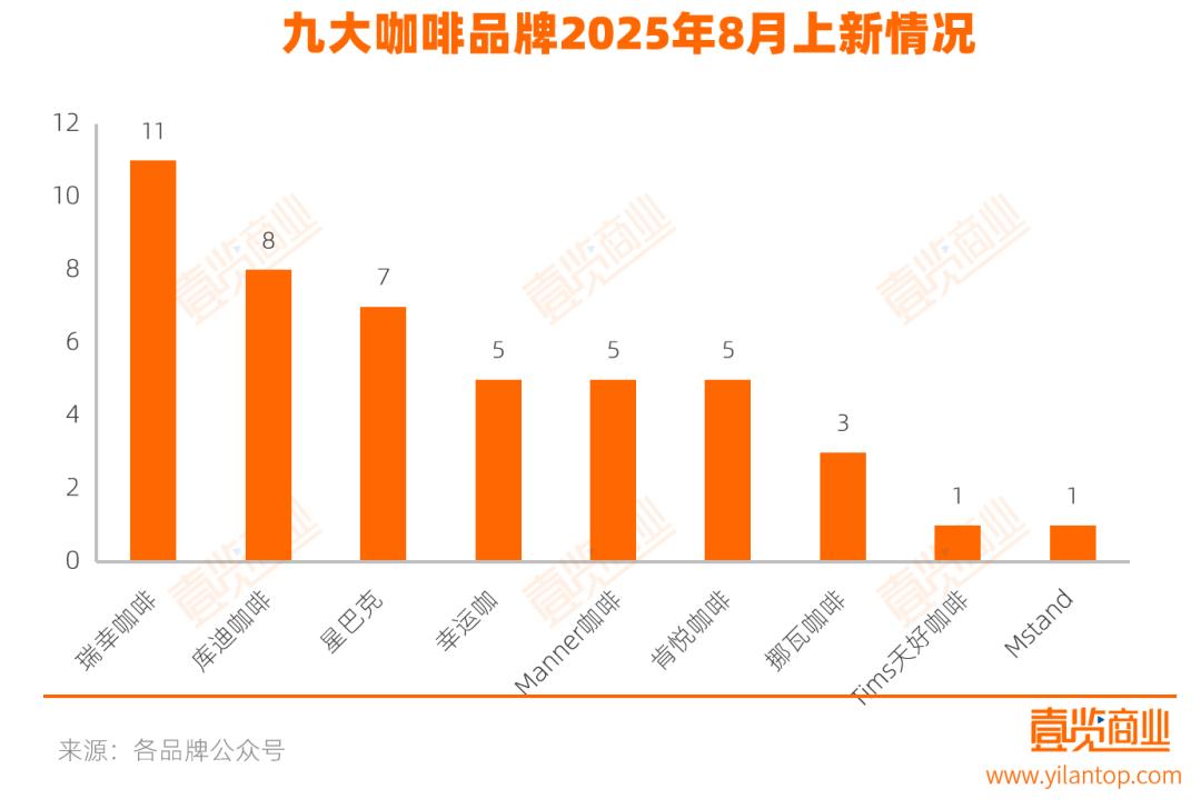 據(jù)茶咖觀察統(tǒng)計(jì),今年8月,全國(guó)門(mén)店數(shù)量排名前十的咖啡品牌總共推出了46款新品,平均每天上新1.5款產(chǎn)品。