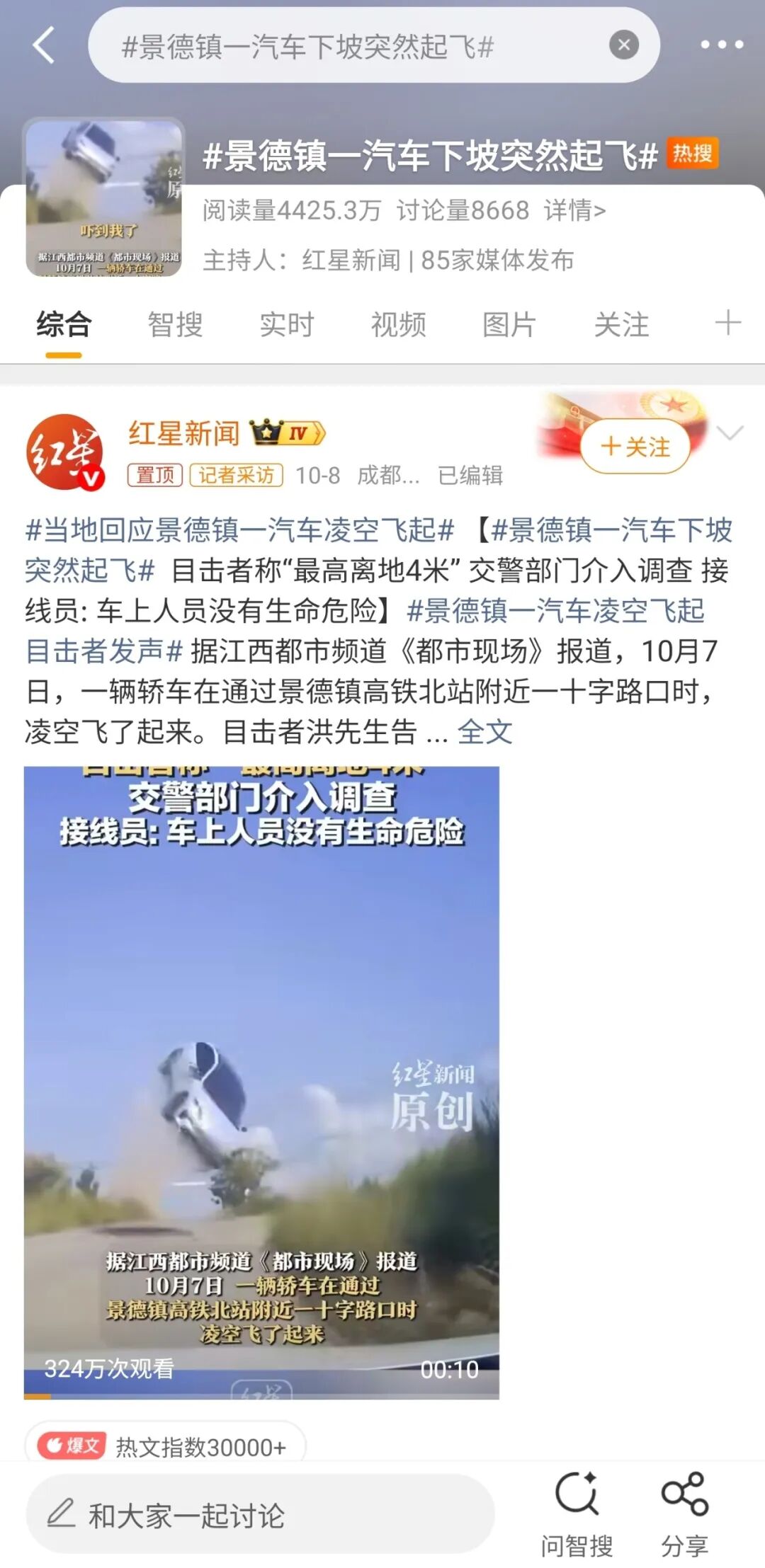 國(guó)慶假期,景德鎮(zhèn)一輛汽車下坡“起飛”上熱搜。司機(jī)誤將油門當(dāng)剎車,車輛高速?zèng)_坡失控,凌空飛起最高4米,飛行約20米撞到廣告牌停下。