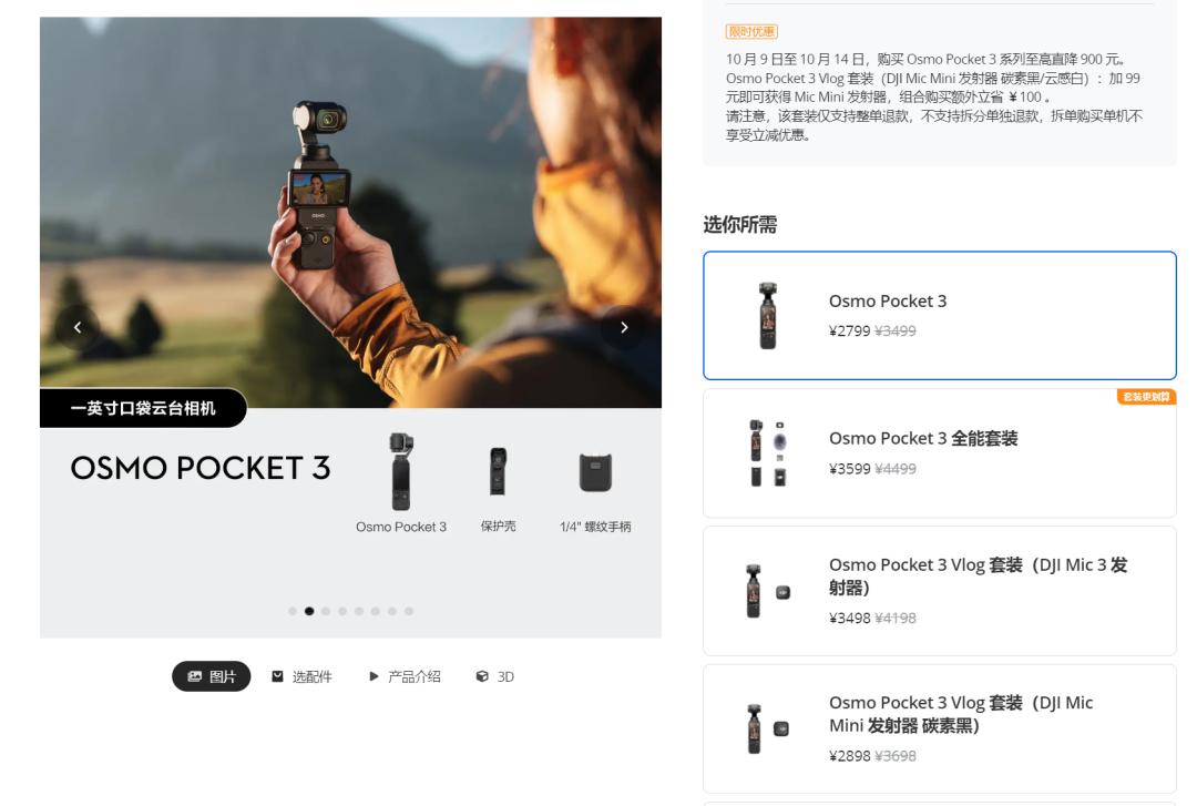 從本輪降價(jià)的具體產(chǎn)品來看,大疆從10月9日到10月14日的降價(jià)幅度較大。其中,Pocket 3標(biāo)準(zhǔn)版直降700元(從3499元降至2799元),Action 4最高降1129元,Mini4 PRO降價(jià)1478元。
