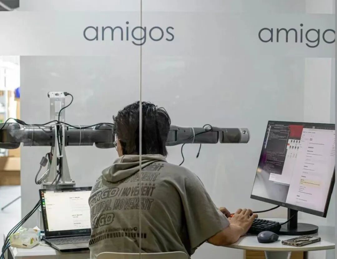 阿米奧機(jī)器人的首款產(chǎn)品為輪式雙臂機(jī)器人AmigosBot,具備14個(gè)自由度、±1mm操作精度和5kg負(fù)載能力,適用于3C及汽車電子零配件作業(yè)。公司已與華南智能硬件制造企業(yè)迪比科能源達(dá)成深度合作,為其東南亞和美洲工廠提供柔性產(chǎn)線解決方案。