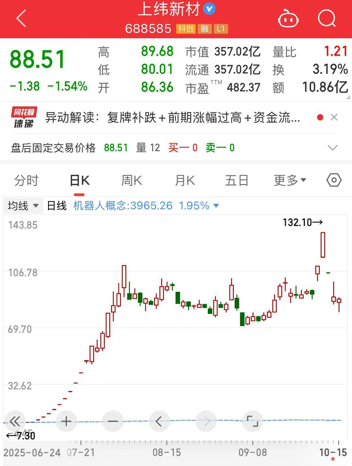 不過(guò),值得注意的是,自10月13日復(fù)牌以來(lái),上緯新材股價(jià)已連續(xù)3個(gè)交易日下跌,13日復(fù)牌當(dāng)天更是跌了20%。