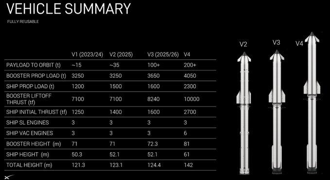不同版本星艦的參數(shù)配置,來(lái)源:@elonmusk