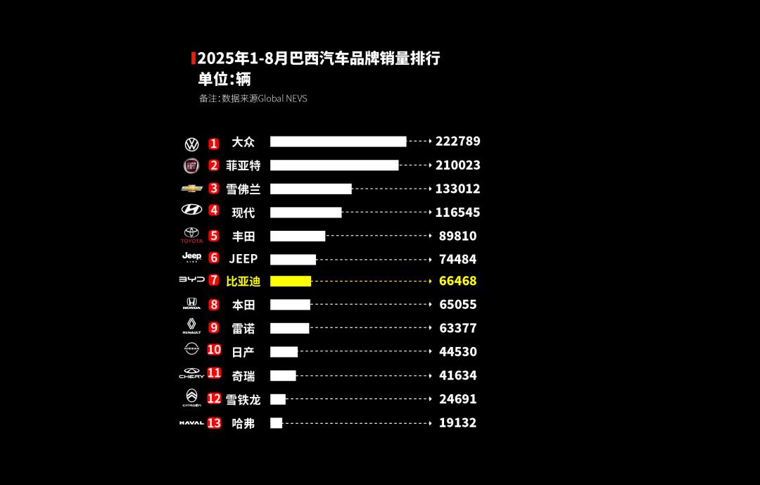 從出口維度來看,最近兩年,巴西已經(jīng)進(jìn)入了中國(guó)汽車出口主力市場(chǎng)Top10。根據(jù)當(dāng)?shù)氐匿N售數(shù)據(jù),今年1-8月,比亞迪也進(jìn)入了當(dāng)?shù)劁N量Top10。緊隨其后的是排名第11位的奇瑞,另外長(zhǎng)城也有著不錯(cuò)的勢(shì)頭。