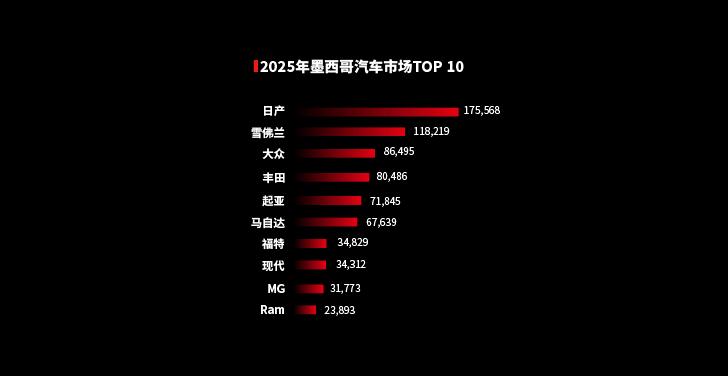 這個(gè)地區(qū)更加值得關(guān)注的其實(shí)是墨西哥市場(chǎng)。從出口維度來看,2025年,墨西哥已經(jīng)超過俄羅斯,成為中國(guó)汽車出口第一大市場(chǎng)。當(dāng)然,這主要和墨西哥特殊的地理位置有關(guān)——不少車企把這里作為出口美洲的中轉(zhuǎn)站。