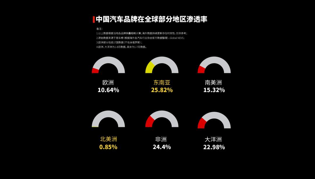 那么在不同地區(qū),中國(guó)品牌的具體銷售情況如何?中國(guó)車,在哪個(gè)國(guó)家更受歡迎,滲透率更高?