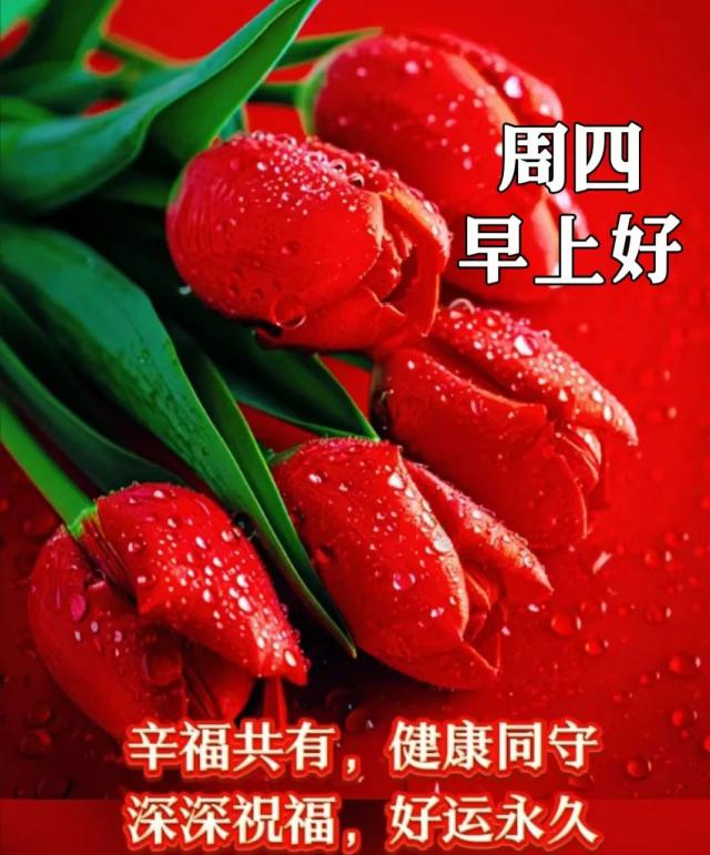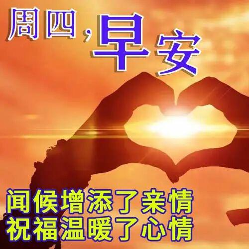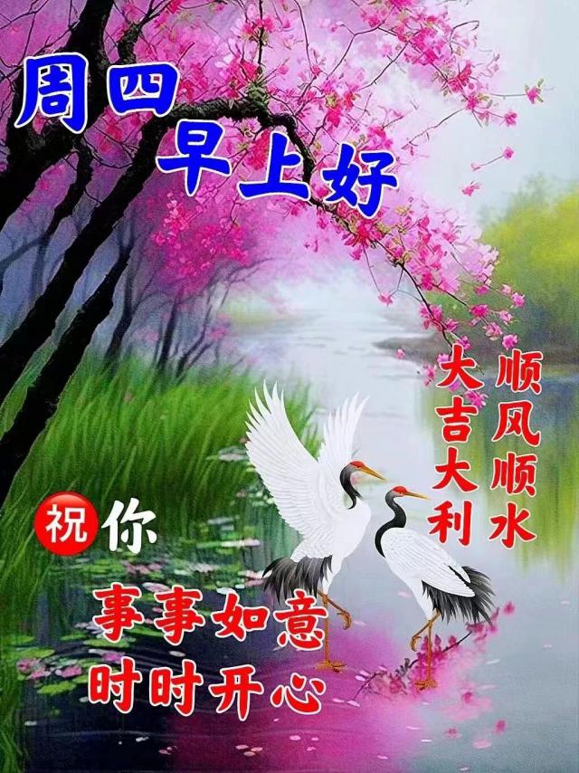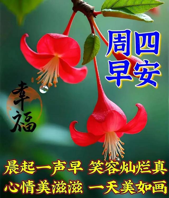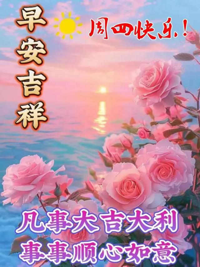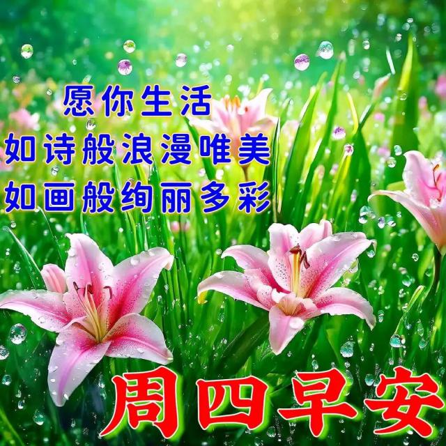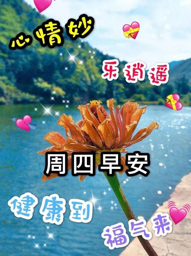 清晨的一聲問候,帶給你全新的心情;一份祝福,為你開啟新的起點;一句問候,賦予你新的愿望。愿你心中常盈快樂!星期四早安!