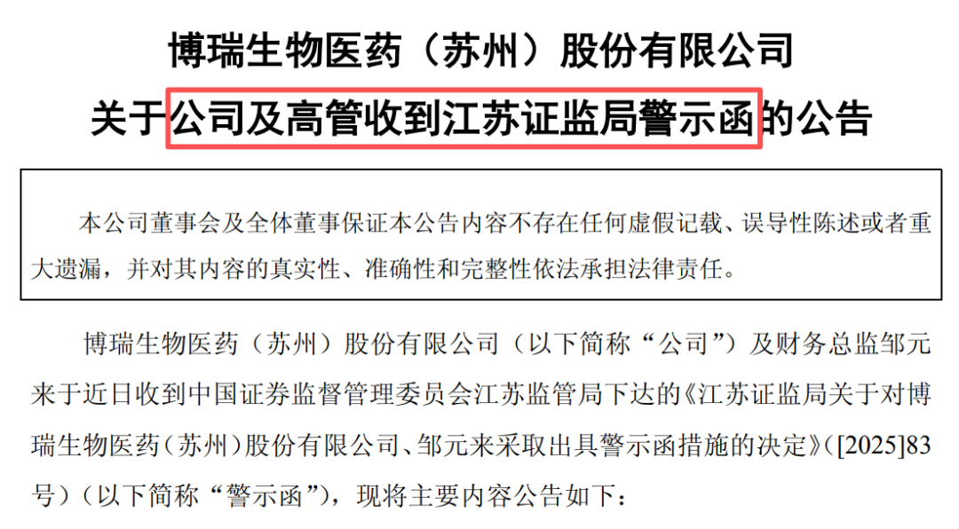 雖然博瑞醫(yī)藥2019年才上市,但此前已經(jīng)完成了三輪融資,分別是IPO首發(fā)融資、2021年底可轉(zhuǎn)債融資和2022年底定向增發(fā)融資。今年6月,因募集資金管理出現(xiàn)問題,公司及財(cái)務(wù)總監(jiān)鄒元來被證監(jiān)會(huì)出具警示函。