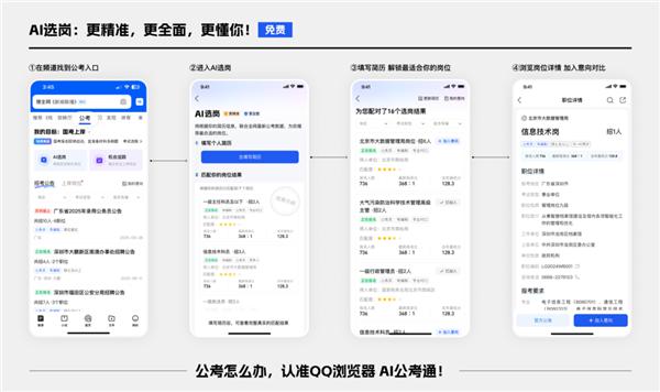 最關(guān)鍵的是,QQ瀏覽器AI公考通將所有核心功能全部免費(fèi)開放??忌恍璐蜷_QQ瀏覽器,橫滑找到“公考”頻道,或者搜索招考公告,即可進(jìn)入“AI公考通”并使用全部功能,無需下載App,也無需注冊賬號。