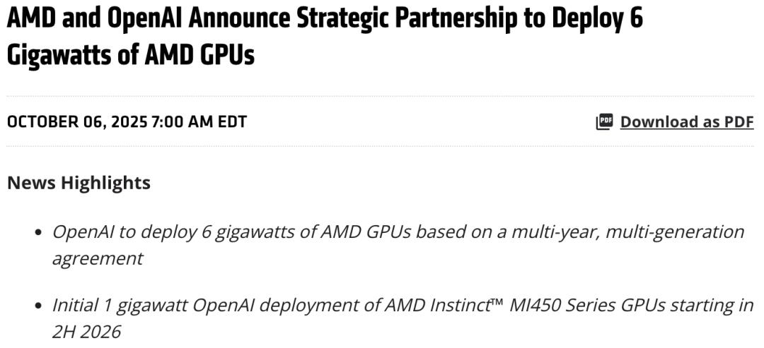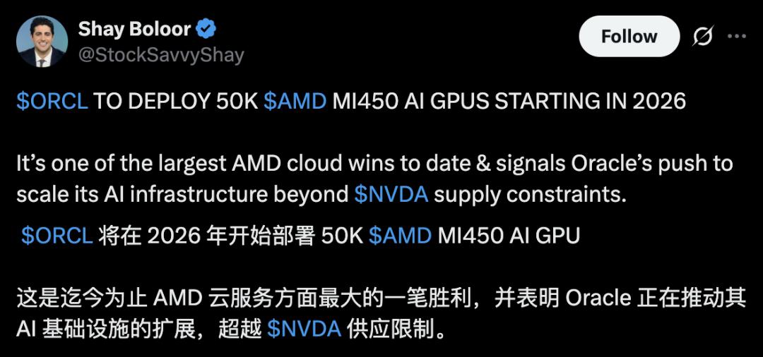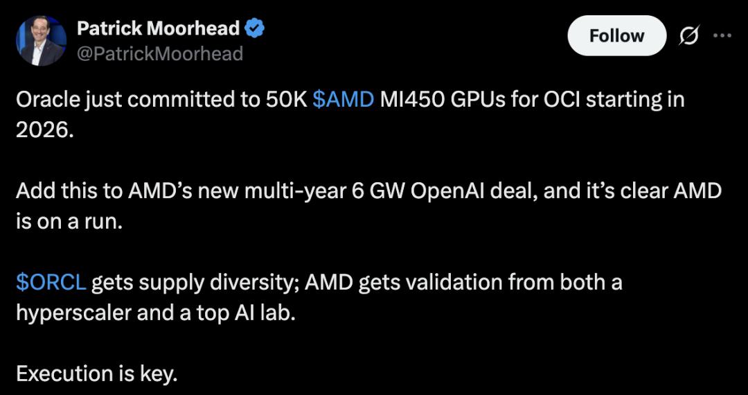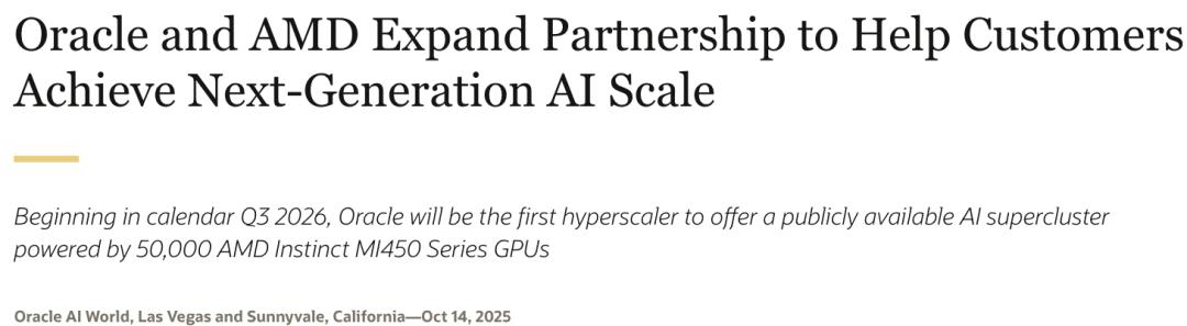 此次Oracle發(fā)布與AMD的合作公告,是在10月6日AMD與OpenAI達(dá)成長期合作之后。