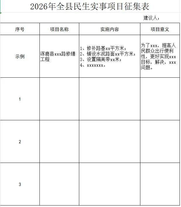 為深入踐行以人民為中心的發(fā)展思想,精準(zhǔn)選好民生實(shí)事,讓項(xiàng)目更貼合民意、滿足民需、惠及民眾,現(xiàn)面向全社會(huì)公開征集涿鹿縣2026年民生實(shí)事項(xiàng)目。希望廣大群眾積極建言獻(xiàn)策,提出寶貴意見和建議。相關(guān)事項(xiàng)如下: