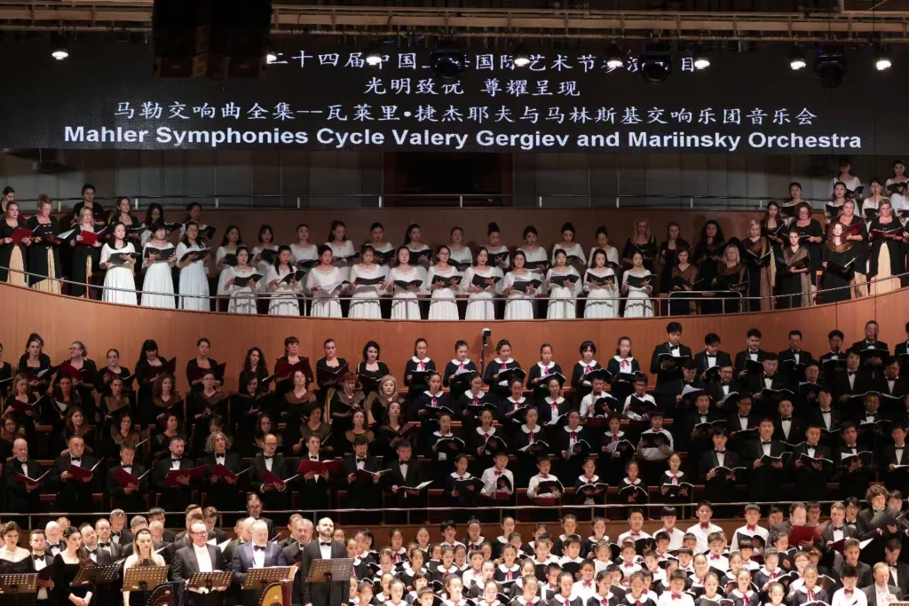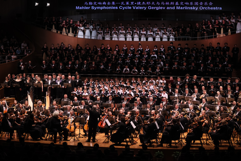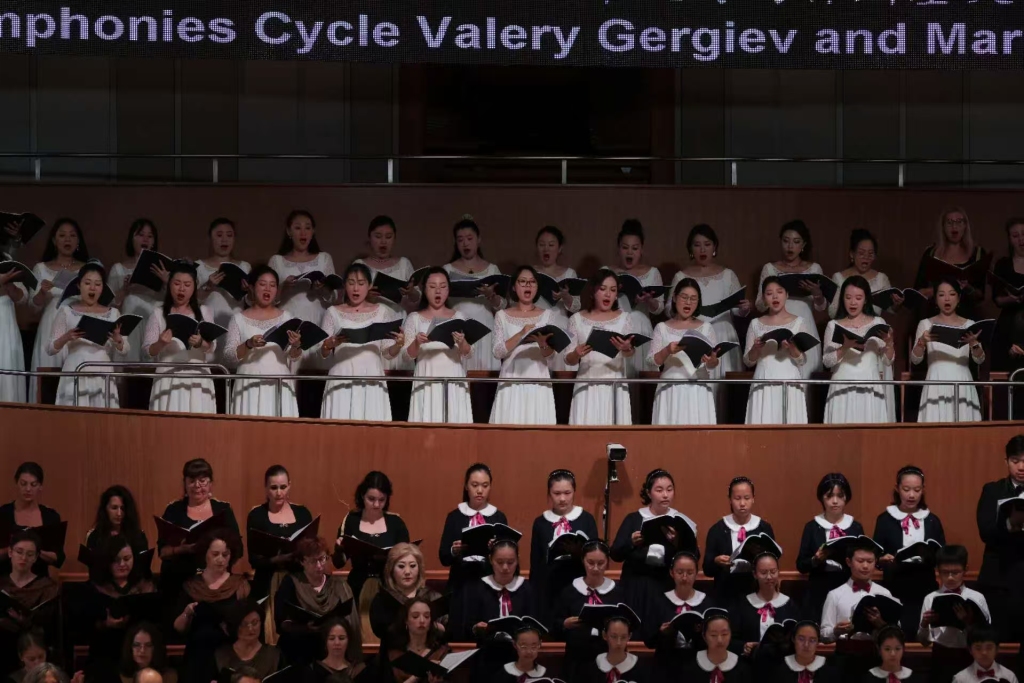 10月15日晚,這部時長約90分鐘的鴻篇巨制在上海東方藝術(shù)中心首次公演。捷杰耶夫率領(lǐng)馬林斯基交響樂團(tuán),四百余位藝術(shù)家共同登臺,他們同頻共振,聲浪磅礴,歌聲直入云霄。