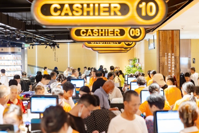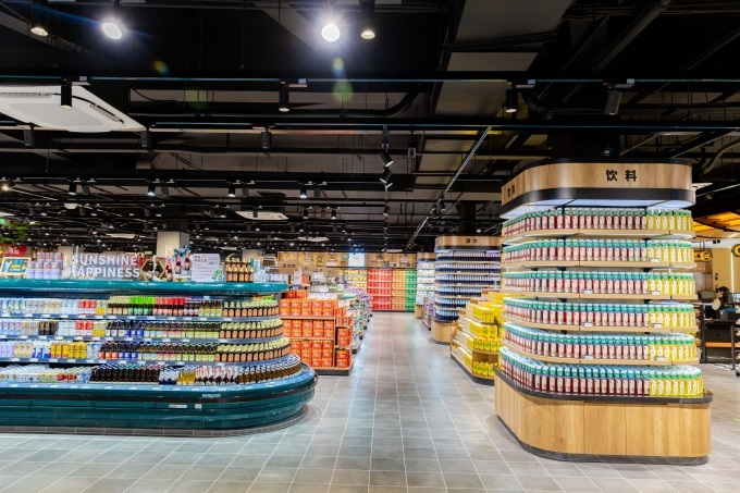 將一樓生鮮區(qū)升級到二樓,面積更大、品類更豐富。增加便民服務(wù)區(qū)和顧客休息區(qū),配置烘手機、茶水等,入口員工會給顧客端茶。給上夜班員工提供熒光馬甲。