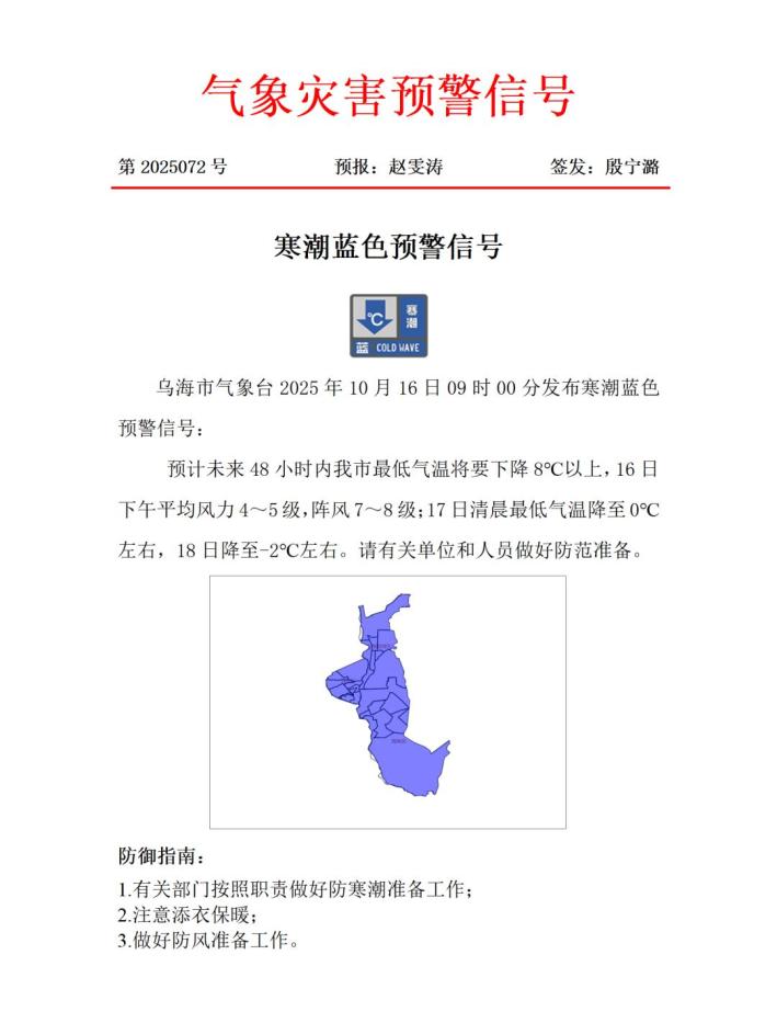 原標題:《寒冷來襲!發(fā)布寒潮藍色預警》