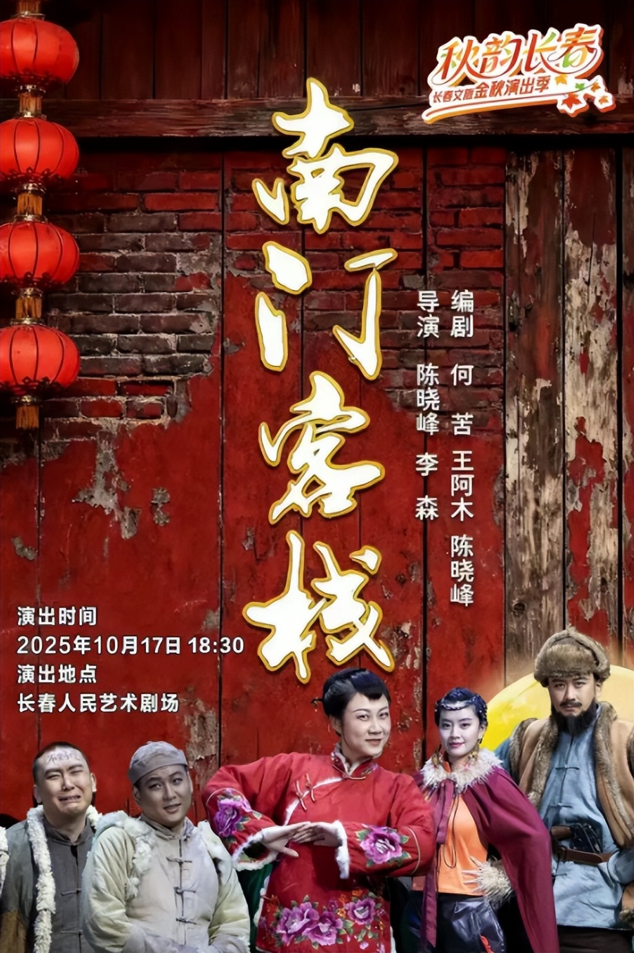 10月17日18:30,話劇《南門(mén)客?!穼⒃陂L(zhǎng)春人民藝術(shù)劇場(chǎng)溫情上演,講述幾路人馬在“南門(mén)客棧”各懷心事的故事。