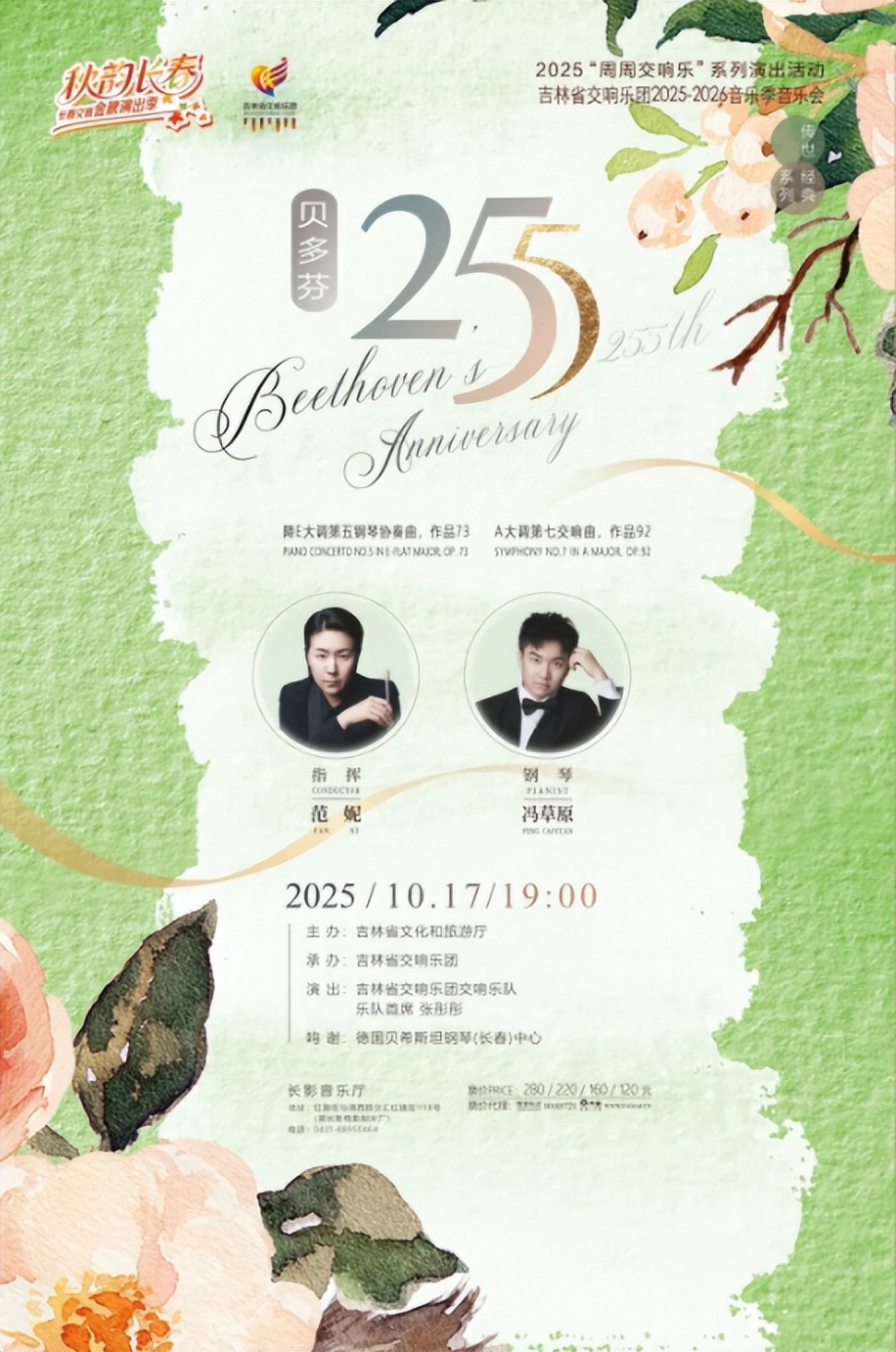 10月17日19:00,長(zhǎng)影音樂(lè)廳將奏響《貝多芬255》交響音樂(lè)會(huì),帶觀眾走進(jìn)古典音樂(lè)的恢弘世界。