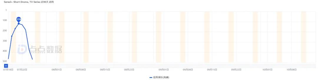 ADX海外短劇版數(shù)據(jù)表明,今年下半年,7月下旬之前,Sereal+日均投放素材量約1500組,7月下旬起投放力度驟降,日投放素材量僅剩幾十組,8月底至今僅為個位數(shù),基本停止投放。