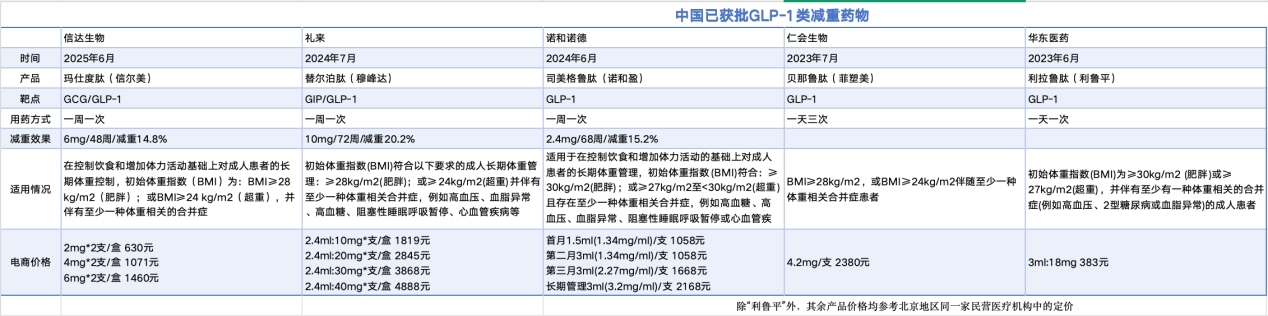 國內(nèi)已獲批GLP - 1減重藥物(數(shù)據(jù)源于公開信息)