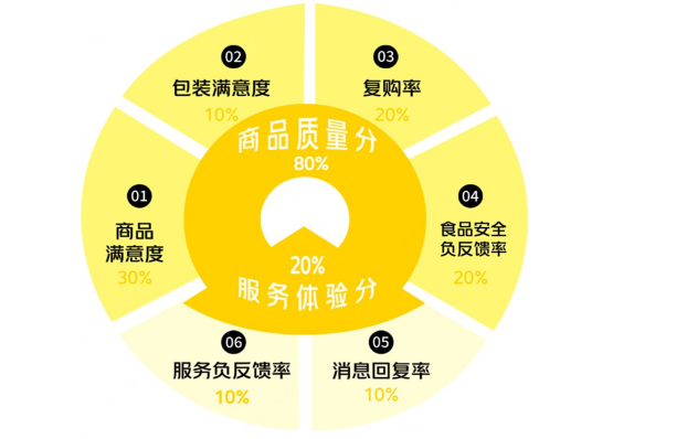 新評價體系迭代后,雖提供了商品、包裝、復(fù)購率、消息回復(fù)率、服務(wù)負(fù)反饋率等更多維度,但在消費者核心關(guān)注的食品安全維度上,信息呈現(xiàn)有所不足。7月,在之前試點的基礎(chǔ)上,新評價體系引入“食品安全負(fù)反饋率”指標(biāo),將“食品安全”這一隱形要素顯性化、公開化。