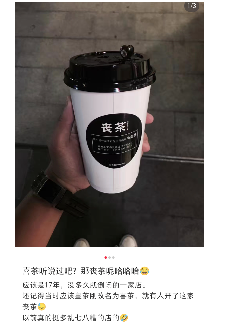 喜茶并非首個嘗試“負能量營銷”的茶飲品牌。早在2017年,一家名為“喪茶”的奶茶店就以快閃店形式在上海亮相,憑借“喪文化”一舉成名。