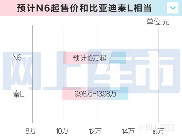 從名字上能推測出,日產(chǎn)N6的定位比N7低,車身尺寸也小一些,屬于標(biāo)準(zhǔn)B級車,長4.831米,軸距2.815米。它搭載了同級最大的21.1kW·h電池,純電續(xù)航里程超150公里。N6起售價(jià)預(yù)計(jì)在10萬元左右,上市后將主要與比亞迪秦L等車型競爭。