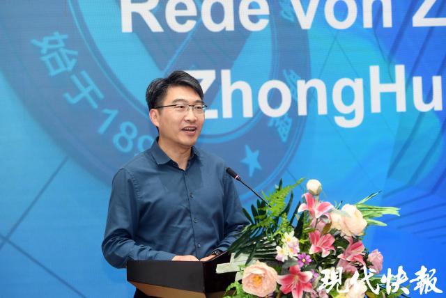 中華中學(xué)校長朱征致辭歡迎德國師生。朱征表示,今年還會新增第四所中學(xué)——GH中學(xué),成為中華中學(xué)的友好學(xué)校。剛剛過去的7月回訪時,GH中學(xué)動員了很多德國接待家庭參與中華中學(xué)師生的訪問活動,德國北威州電視臺和報紙還做了專題報道。朱征希望德國師生通過這次活動,在中華中學(xué)、在南京能度過愉快的時光。