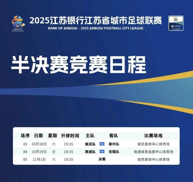 本周六、周日,“蘇超”半決賽即將打響。根據(jù)“蘇超”官方擬定的規(guī)則,半決賽對陣如下:10月18日19:35,南京隊將在主場迎戰(zhàn)泰州隊;10月19日19:35,南通隊將坐鎮(zhèn)主場迎戰(zhàn)無錫隊。